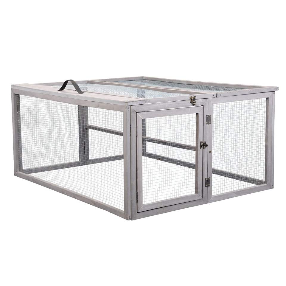 Portatile grigio pieghevole conigliera con barra appollaiata in legno pieghevole Guinea Chick Run all'aperto gabbia per coniglietti case e mobili