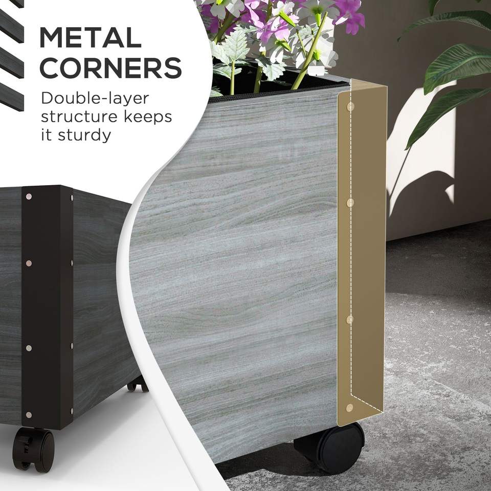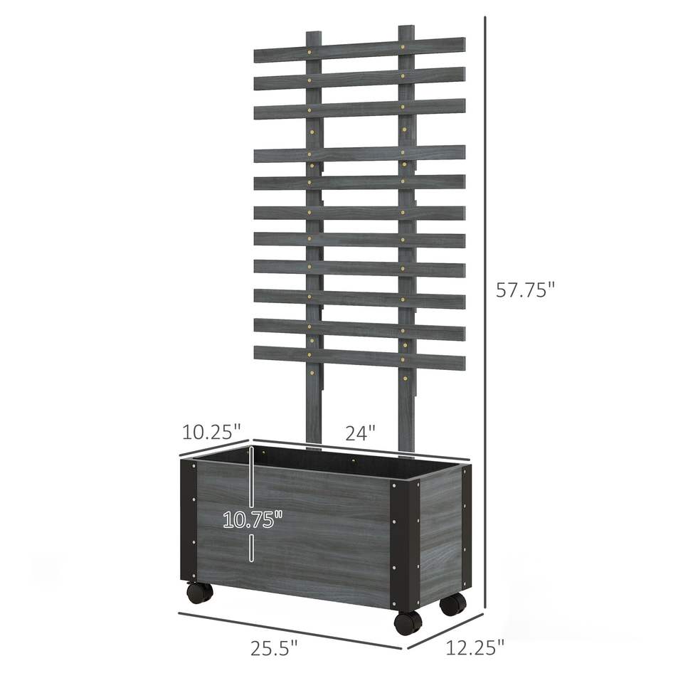 Portable Gray Wooden Raised Garden Bed with Trellis & Metal Corners Outdoor Fence Metal & Wood Gate