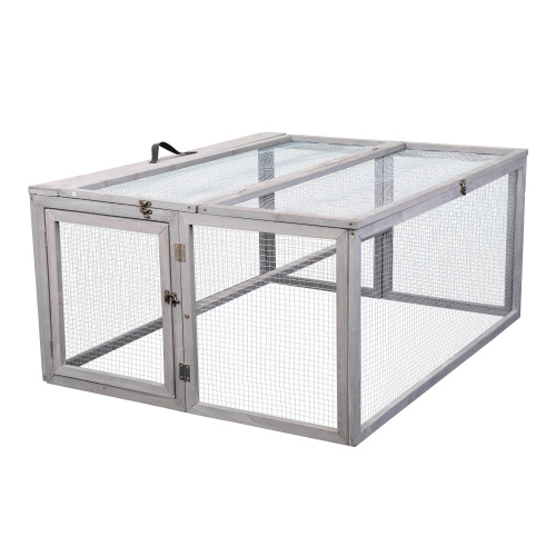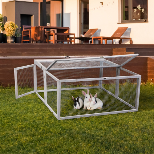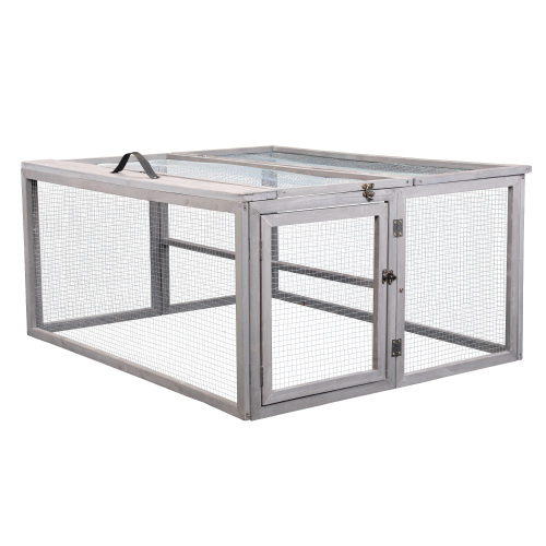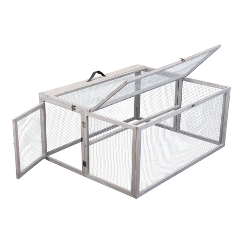 Portable Grey FCJ Folding Rabbit Hutch Wooden Guinea Pig Runway with Perch Pole Outdoor Animal Cage