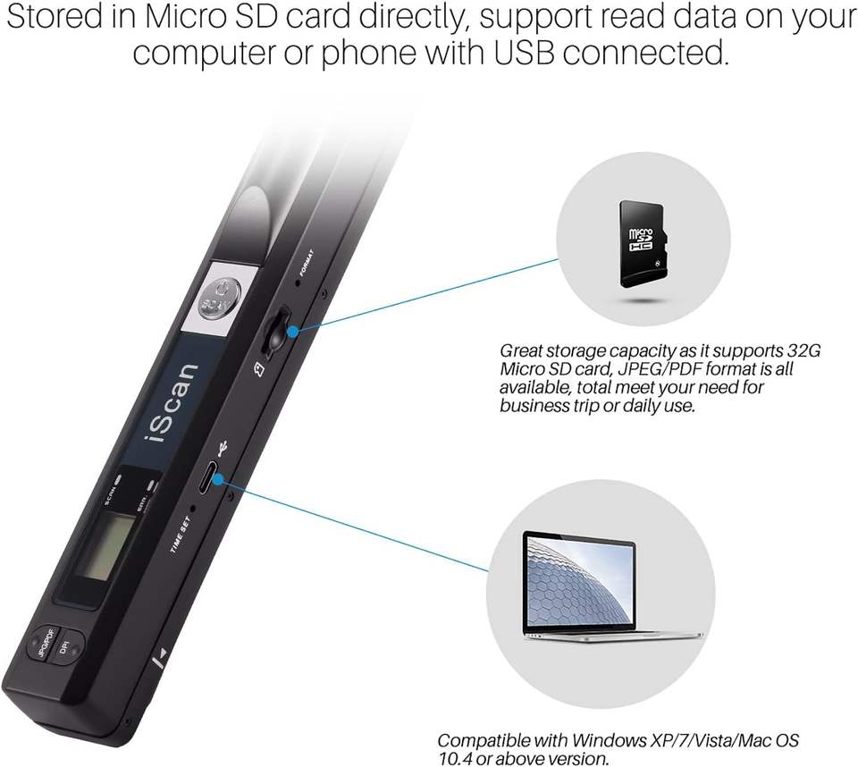 Scanner Portatile per Documenti Digitali 900DPI A4 Wireless USB con Penna JPEG/PDF 3 Secondi per Pagina Garanzia 1 Anno Disponibile