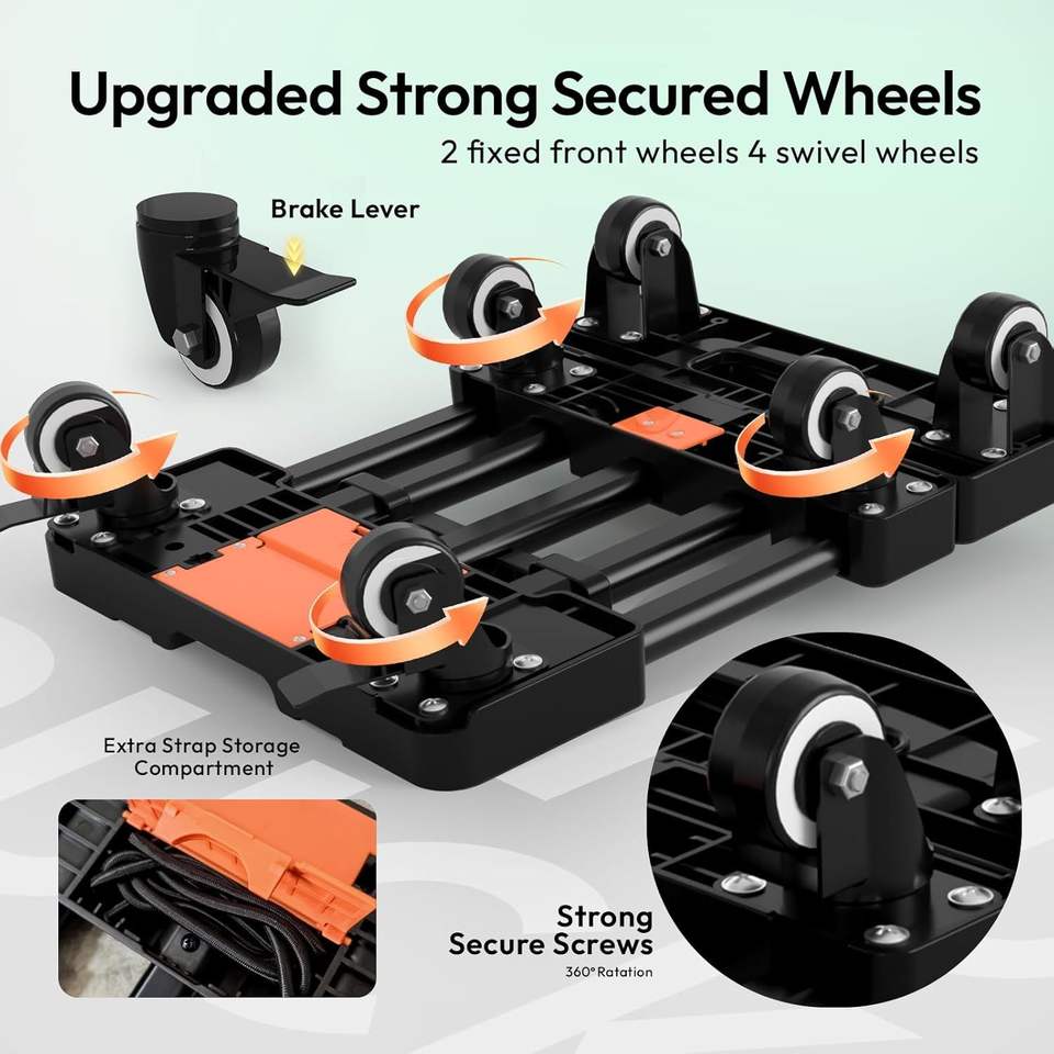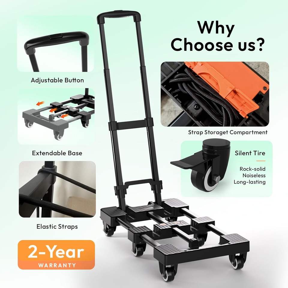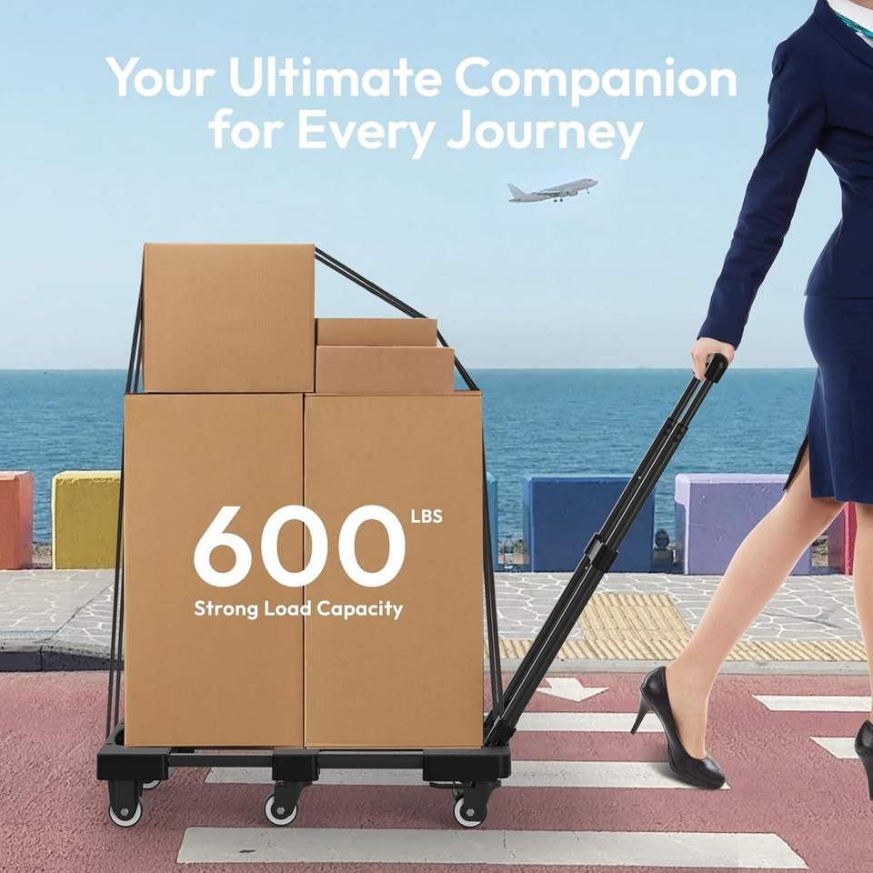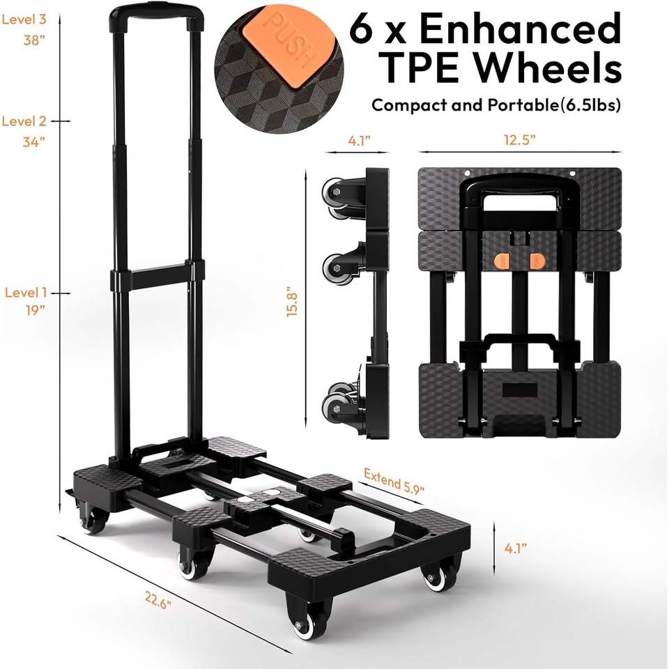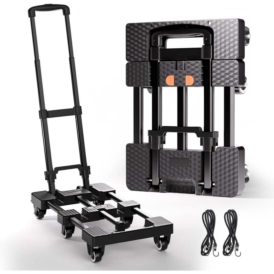 Carrello Pieghevole Portatile Resistente da 227 kg (500 libbre) a 6 Ruote, Carrello per Bagagli Richiudibile con 2 Corde Elastiche, Carrello Compatto Facile da Trasportare