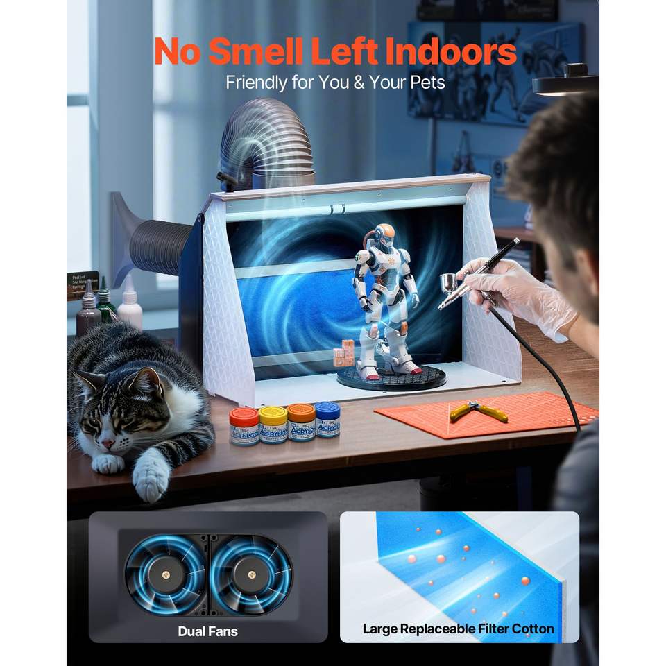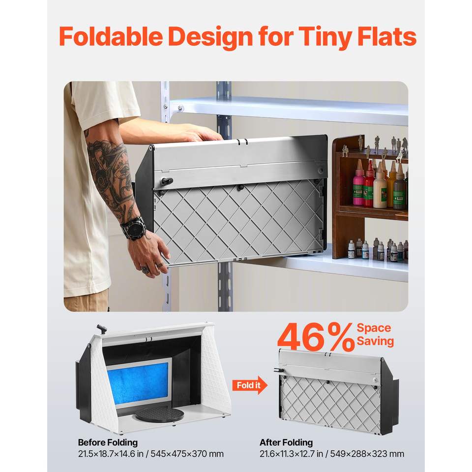 Kit Cabina di Verniciatura Portatile per Aerografo 21.5 X 18.7 X 14.6 Pollici con Doppia Ventola e 3 Luci LED