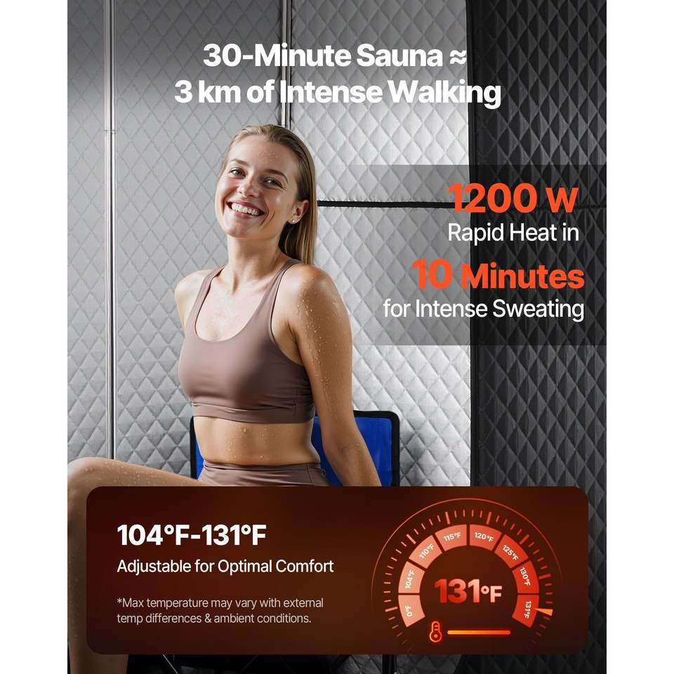 Tenda Sauna a Vapore Portatile per Casa, per 1 Persona, Versione Migliorata con Vaporizzatore e 1 Sedia Pieghevole, Telecomando Incluso