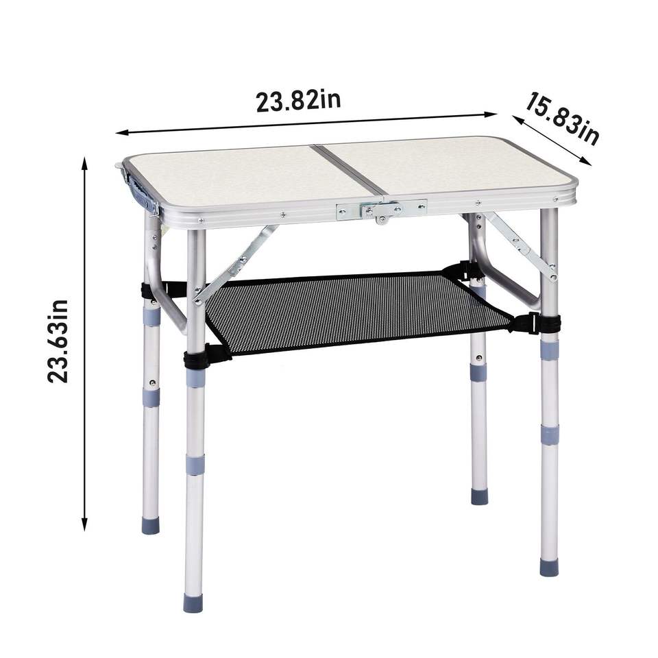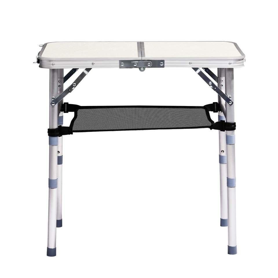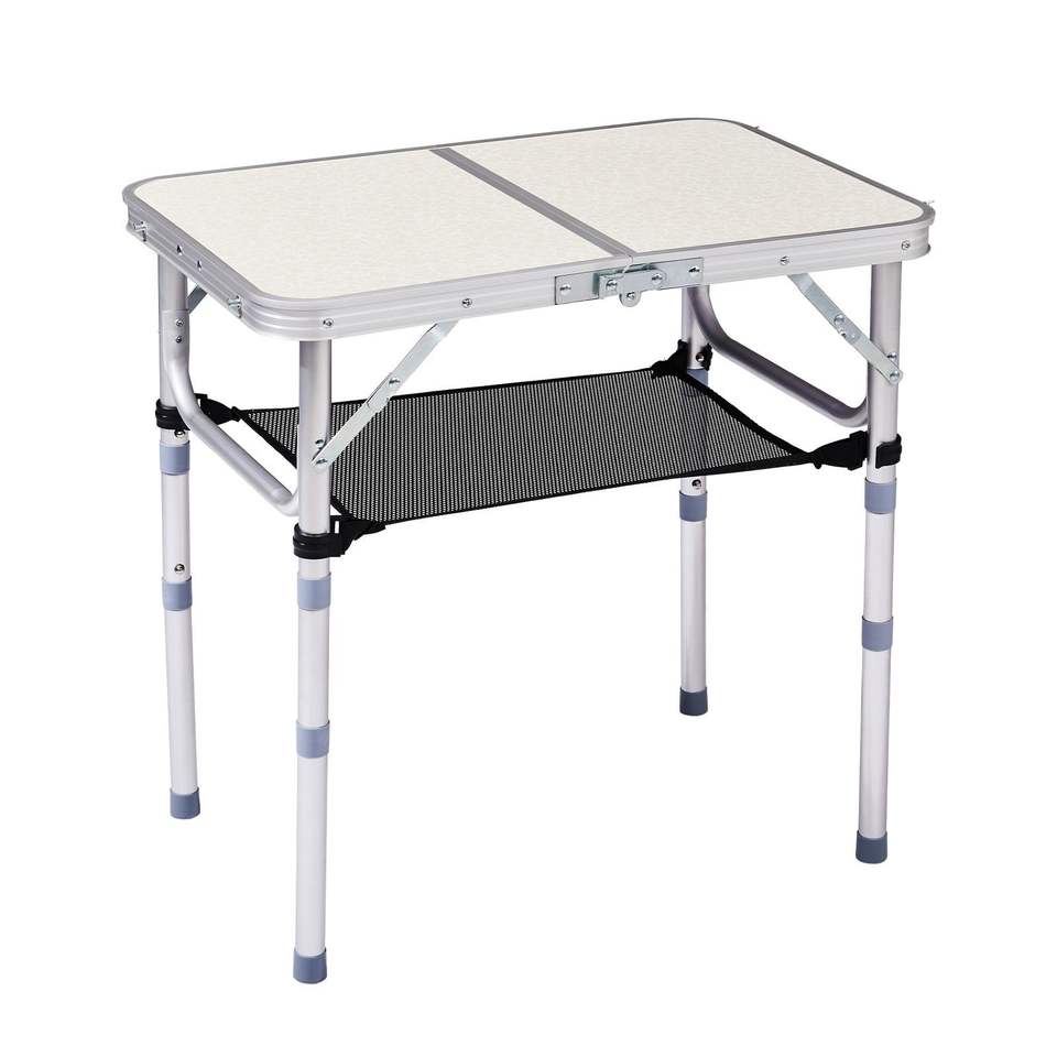 Tavolo da Campeggio Portatile in Alluminio Leggero, Altezza Regolabile, Ripiano Pieghevole con 2 Impostazioni di Altezza