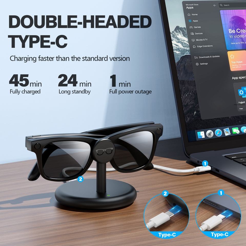 Base di Ricarica Portatile in Metallo con USB-C per Occhiali Smart Ray-Ban Meta AI, Wayfarer, Skyler e Altri Modelli