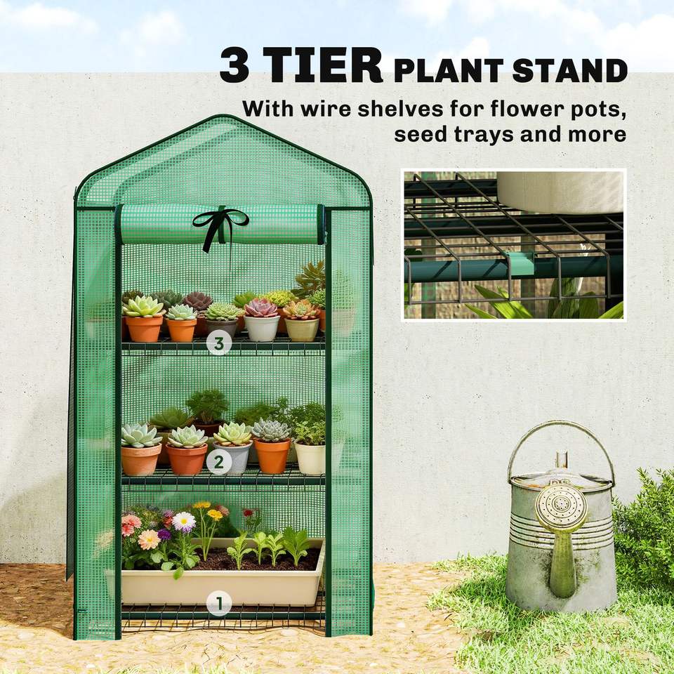Mini Serra Portatile con Tetto a Rete e Porta Avvolgibile con Cerniera 70 cm x 50 cm x 127 cm, Stanza da Giardino Verde