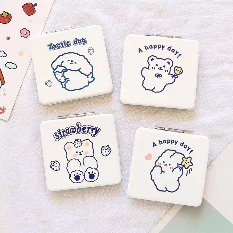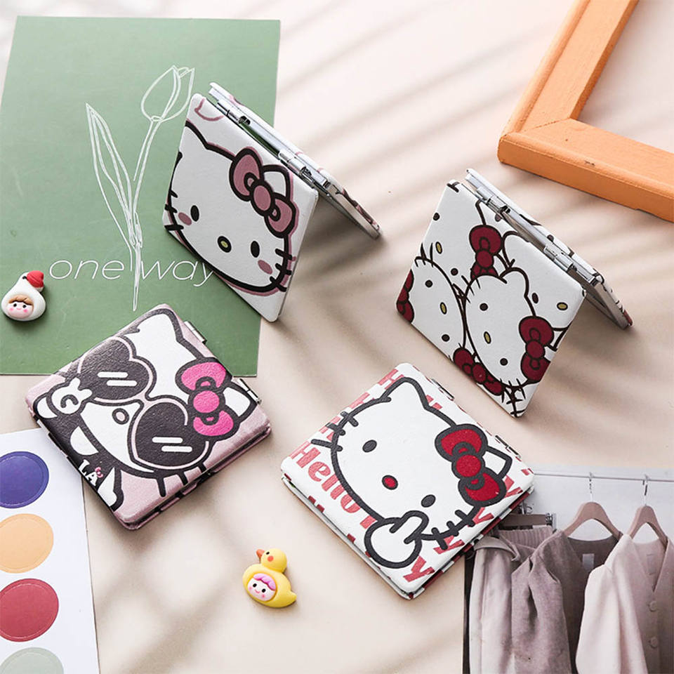 Specchio Portatile Mini per Trucco, Ingrandente e Illuminato, Design Personalizzato Gatto Kt, Pieghevole a Due Lati, Regalo Decorativo per Donne e Ragazze