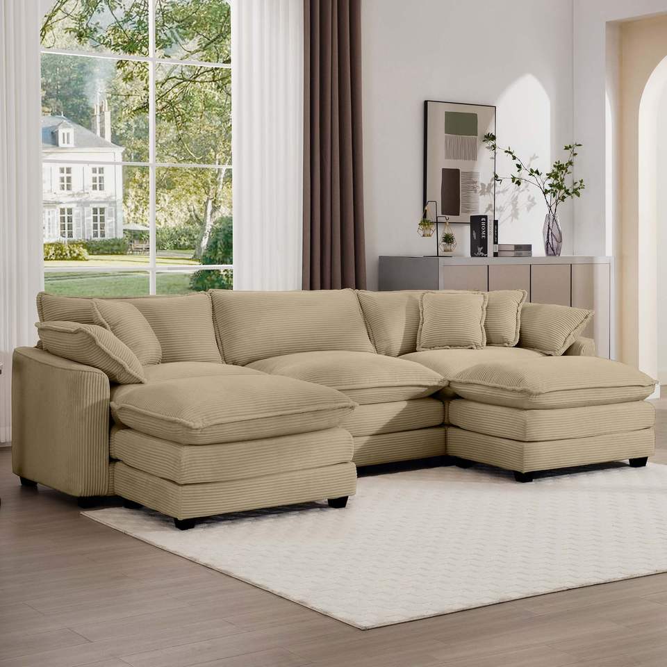 Divano Modulare a L Portatile con Cuscini, Set di Sedute Profonde e Oversize per Casa, Divano Letto Angolare a Schienale Basso per Soggiorno