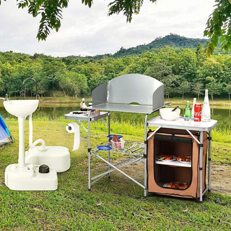 Tavolo Portatile per Barbecue all'Aperto con Paravento e Borsa per Cucinare all'Aperto