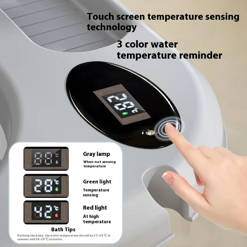 Portable Outdoor Foldable Baby Bathtub with Thermometer Heat Retention Anti-Slip Collapsible Toddler Shower Tub