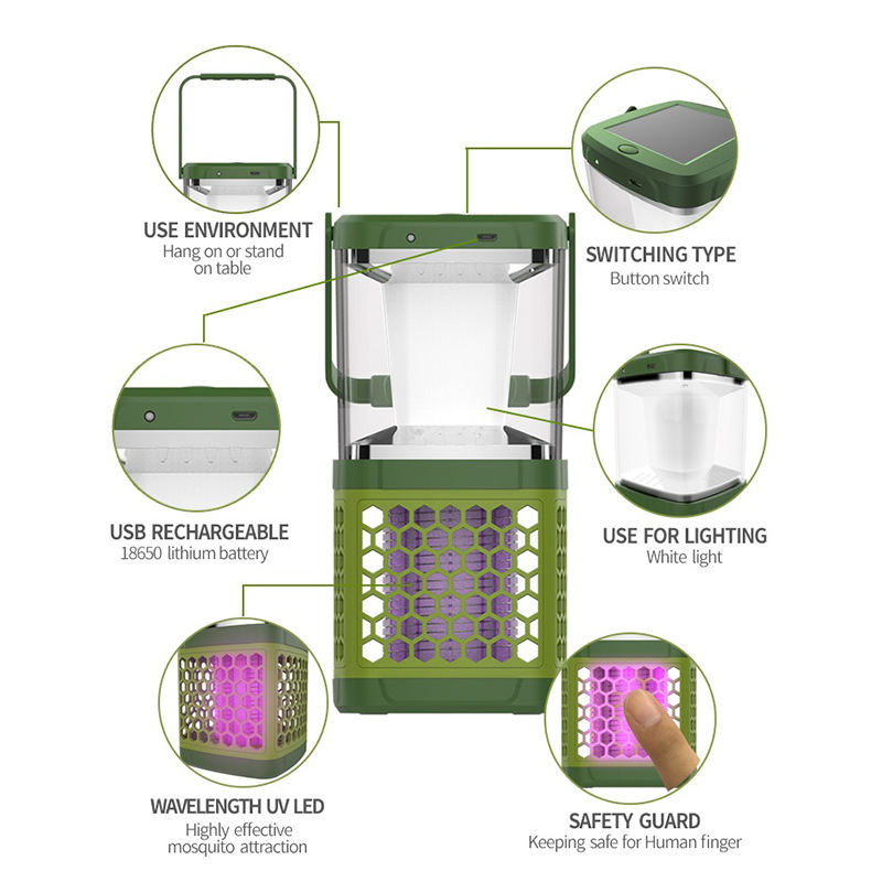 Portable Outdoor Lighting Lantern with Solar Panel USB Cable Mosquito Killer Lamp 5W Solar USB Recharger Electrical Power Source
