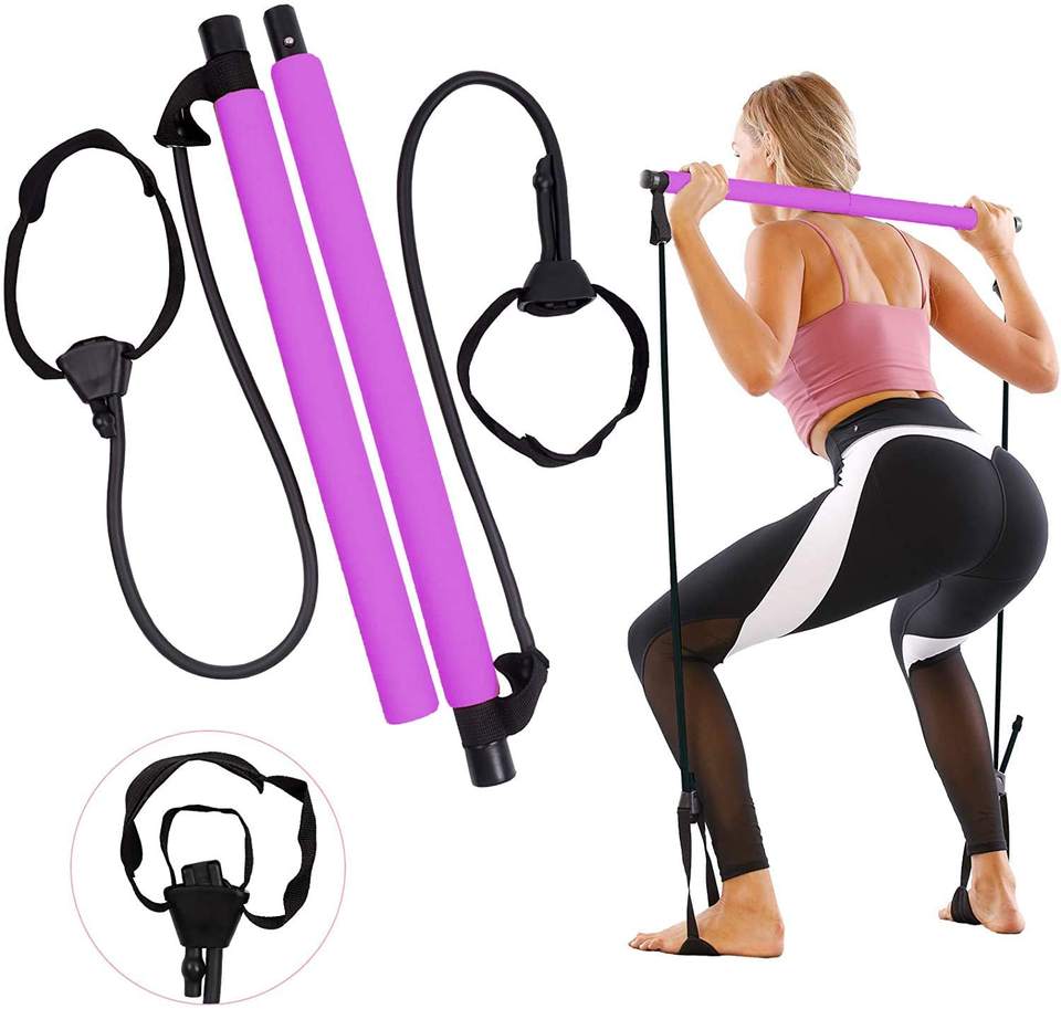 Bastone da bar portatile per pilates con fascia di resistenza/kit barra per pilates con fascia di resistenza regolabile/barre per pilates regolabili