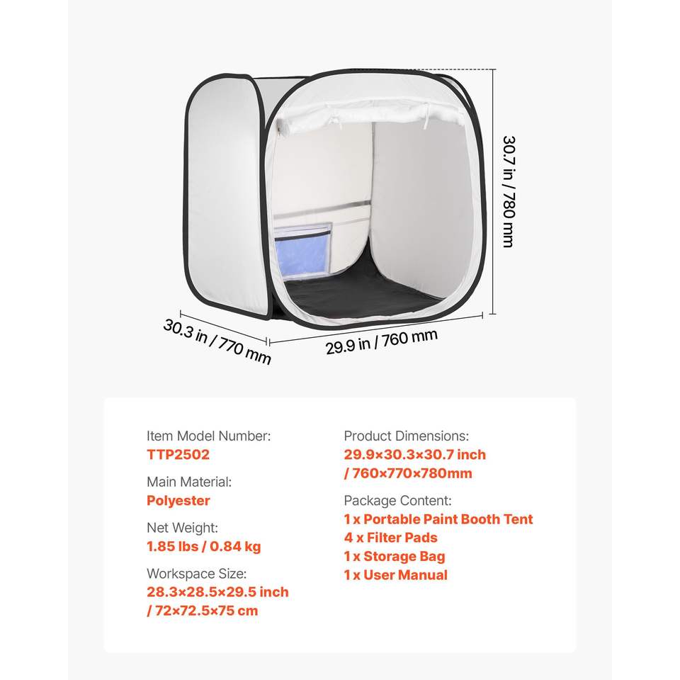 Tenda Portatile Pop-Up per Verniciatura 28.3 X 28.5 X 29.5 Pollici con Porta a Rete per Verniciatura sul Posto