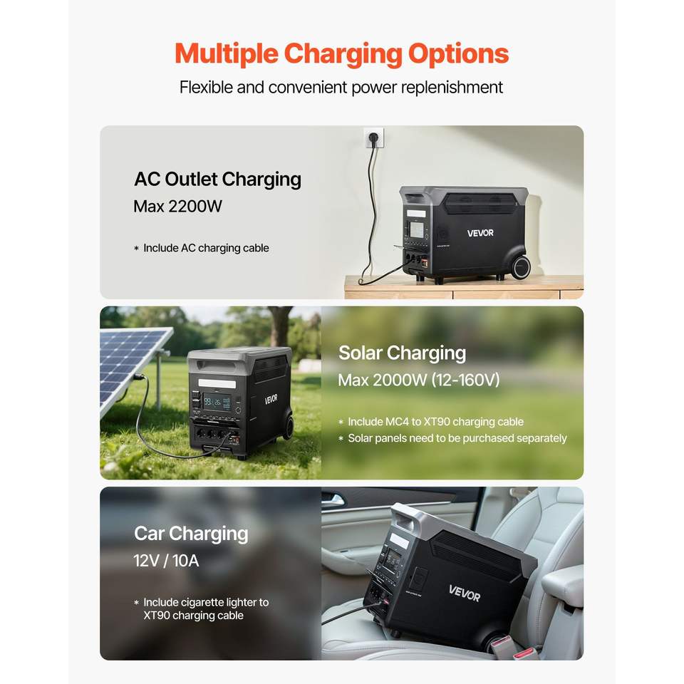 Stazione di Alimentazione Portatile 3600W 3840Wh, Generatore Solare con 10 Porte di Uscita, Potenza di Ingresso Regolabile, Opzione Espandibile