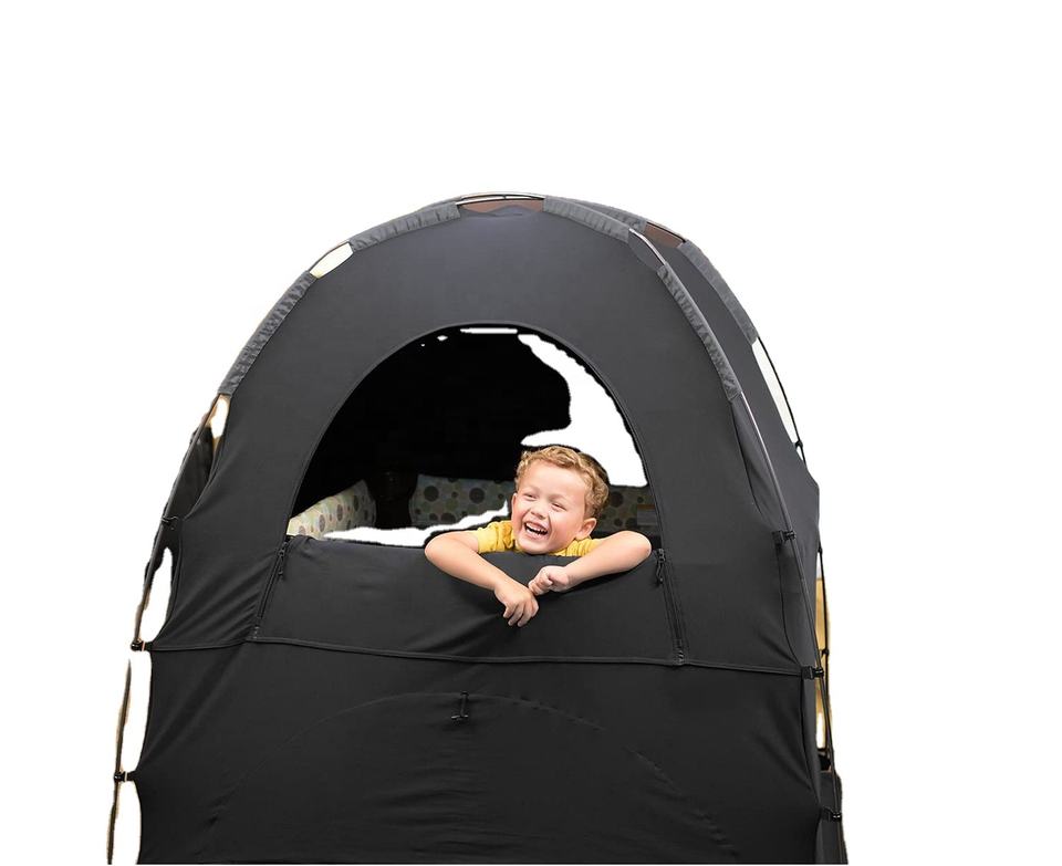 Cuccetta Portatile per la Privacy con Tasca Porta Monitor, Finestra con Cerniera e Tenda Oscurante per il Sonno dei Bambini dai 4 Mesi in su, Biancheria da Letto Nera