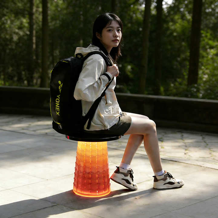 Sgabello Telescopico Pieghevole Portatile Arcobaleno con LED Luminoso, Sedia Ultraleggera Retrattile per Campeggio, Escursionismo, Giardino e Pesca