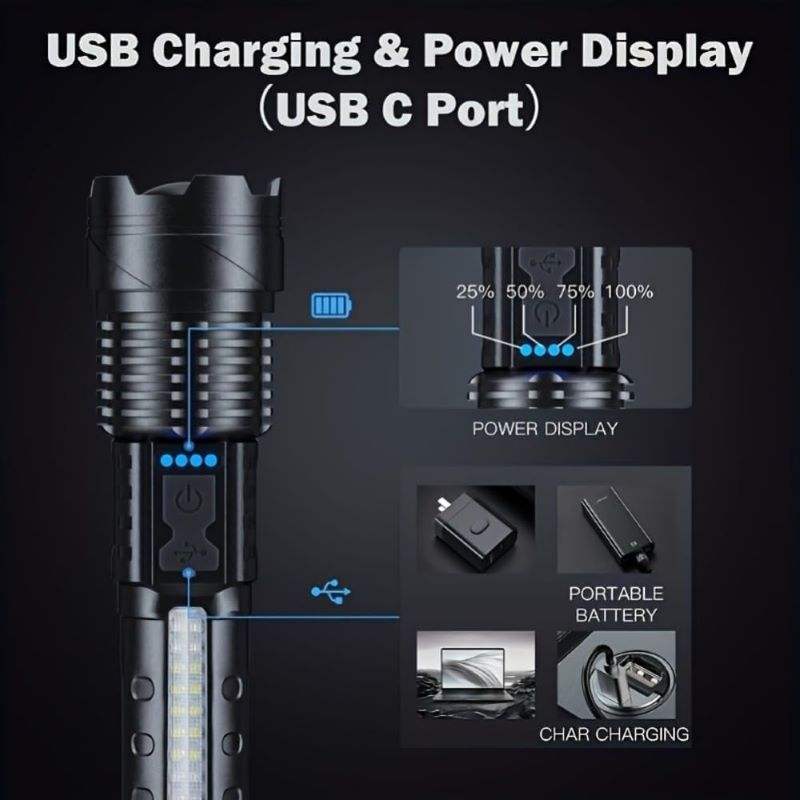 Torcia LED Ricaricabile Portatile per Passeggiate all'Aperto, Prodotto Durevole ed Ecologico