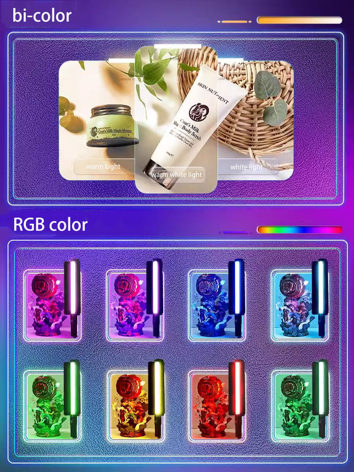 Luce LED RGB Portatile Ricaricabile Bicolore 2700-7500K, Lampada a Bastone per Fotocamera, Illuminazione per Studio Video