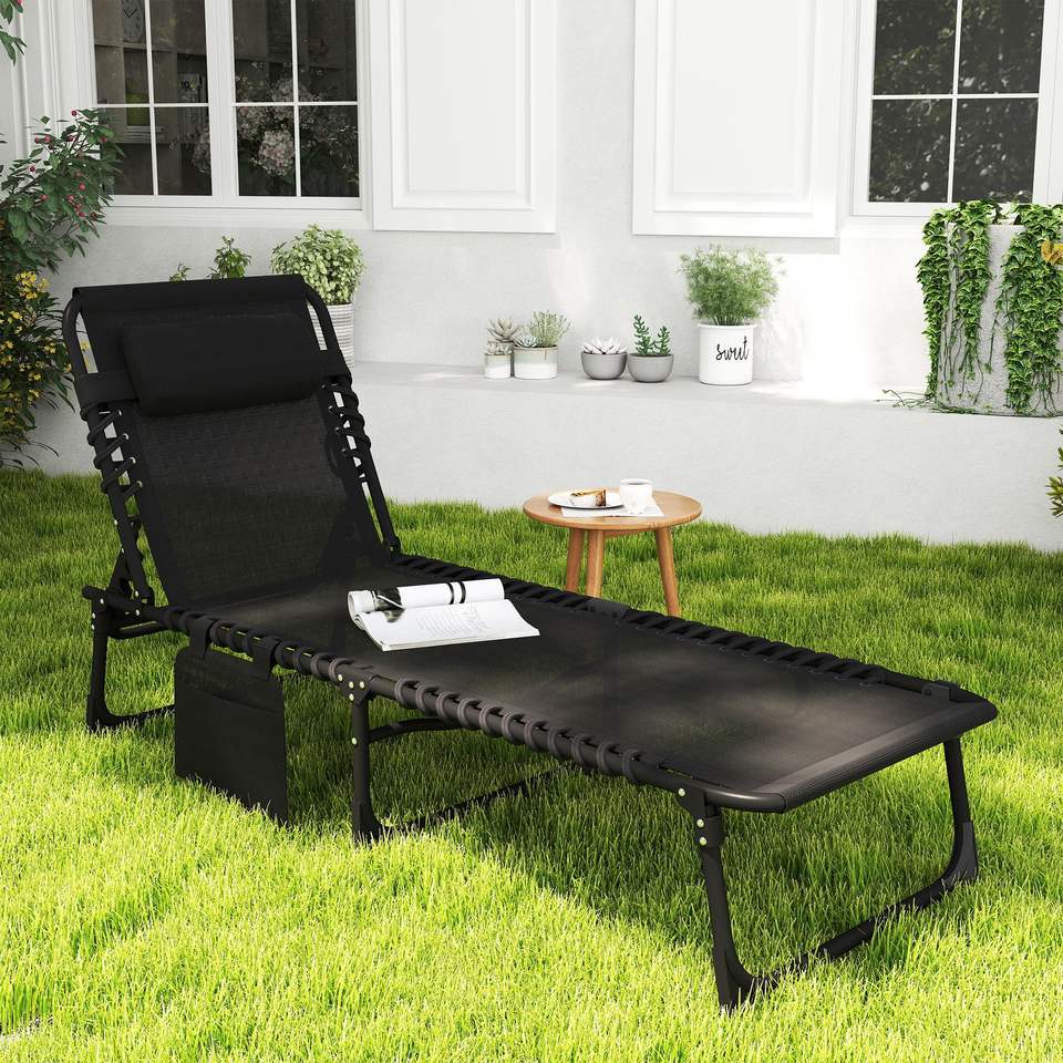Sdraio Portatile Reclinabile con Schienale Regolabile, Lettino Pieghevole da Campeggio con Cuscino Rimovibile per Prendere il Sole