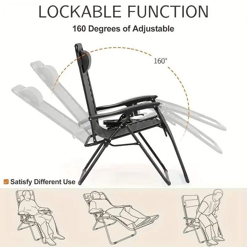 Portable Reclining Lounge Chair for Beach Camping Poolside Garden Lawn Use-Adjustable Pillow Cup Tray-for Outdoor Relaxation