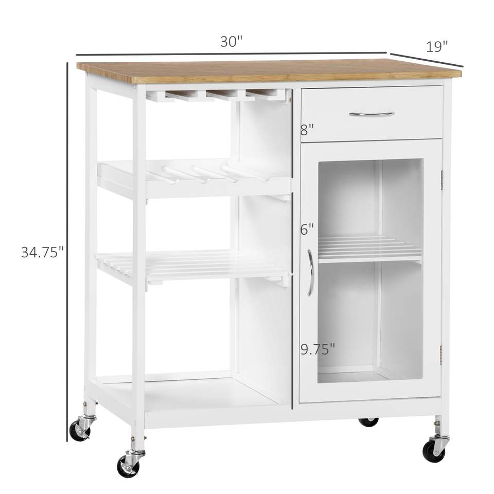 Mobile portatile Utility Cart isola cucina bianca con effetto bambù e ripiano a doghe
