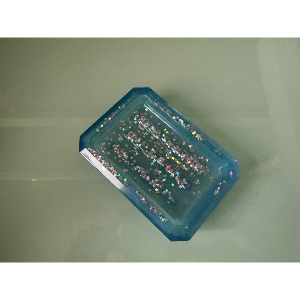 Portasapone Portatile Scintillante Azzurro, Design Contemporaneo Rettangolare con Motivo a Stella, in Resina, Decorazione Bagno, Idea Regalo