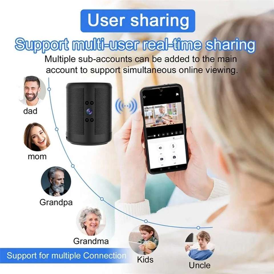 Altoparlante Portatile Wireless con Mini Telecamera, Audio Bidirezionale, Accessori per Telecamere di Sicurezza Domestica IP