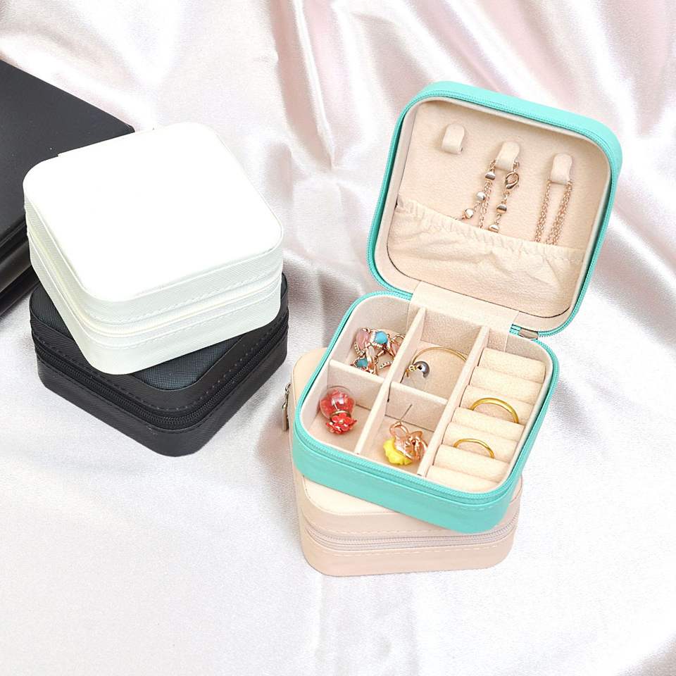 Scatola portagioie quadrata portatile, scatola per orecchini, scatola per anelli, scatola per collane, scatola da viaggio con chiusura a cerniera