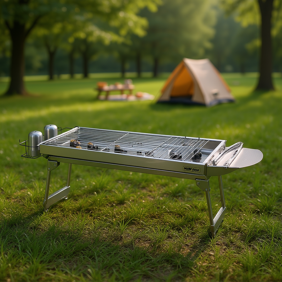 Griglia BBQ Portatile Pieghevole in Acciaio Inossidabile per Picnic, Campeggio e Cucina all'Aperto
