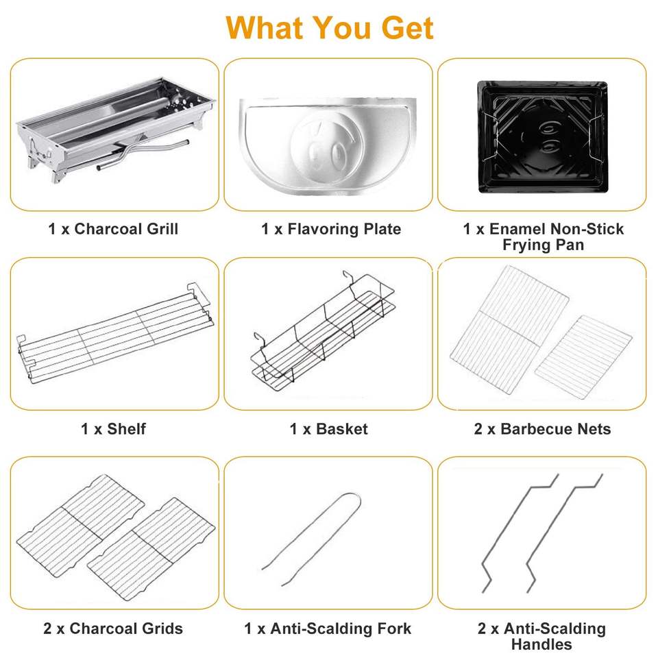 Griglia BBQ Portatile Pieghevole in Acciaio Inox per Picnic e Campeggio, Barbecue a Carbone