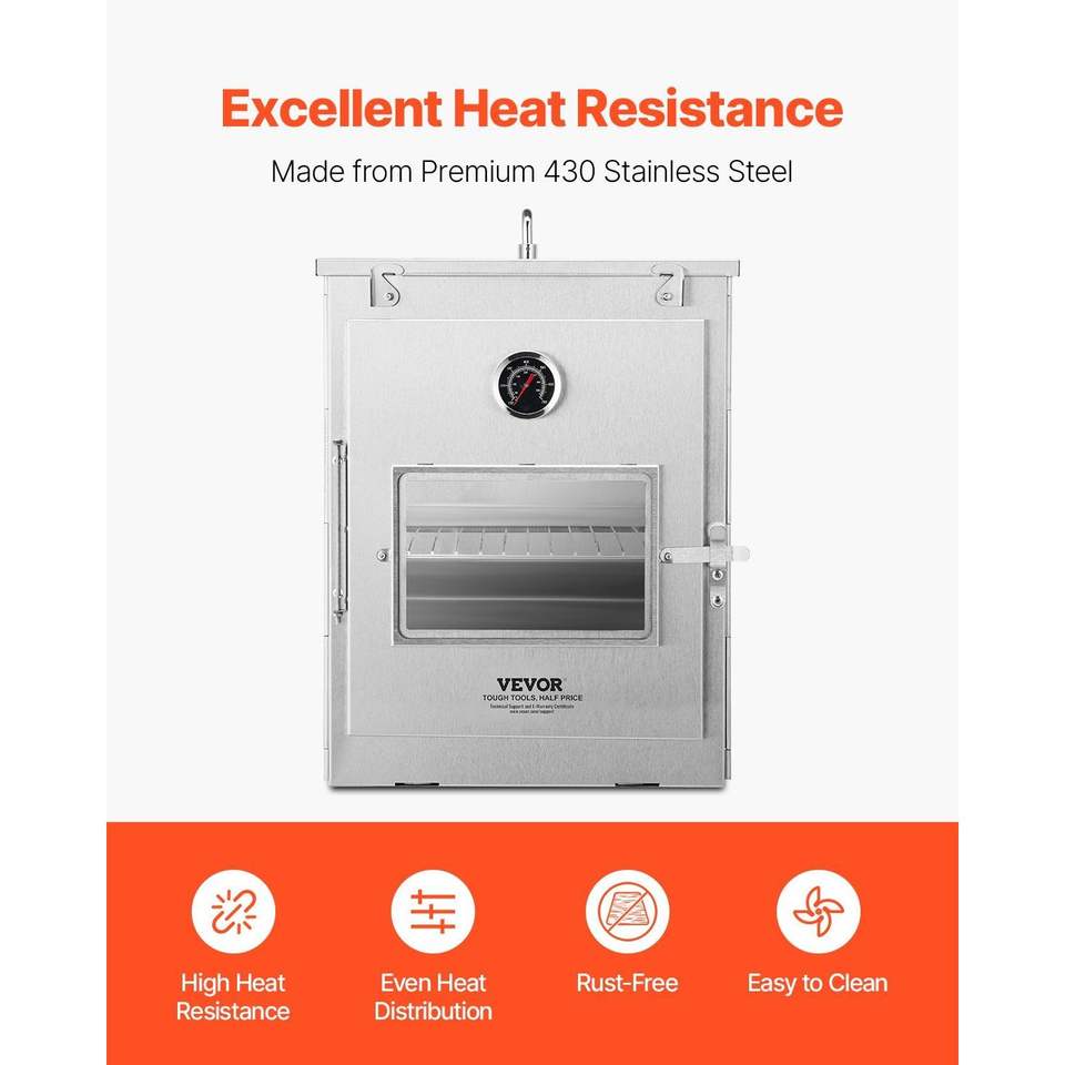 Forno da Campeggio Portatile Pieghevole in Acciaio Inox a 3 Livelli con Manico e Termometro per Riscaldamento a Legna