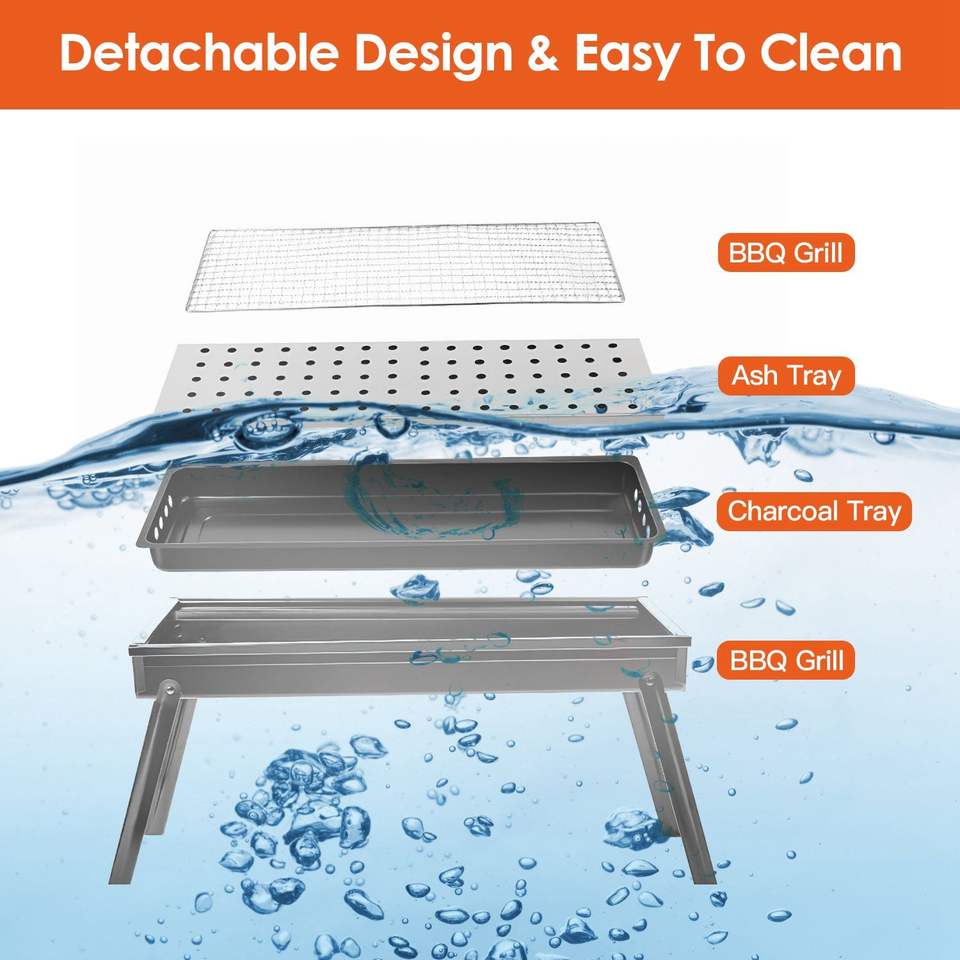 Griglia BBQ Portatile in Acciaio Inox da Tavolo, Facile da Montare, Griglia a Carbone Pieghevole con Ripiano per Campeggio e Picnic