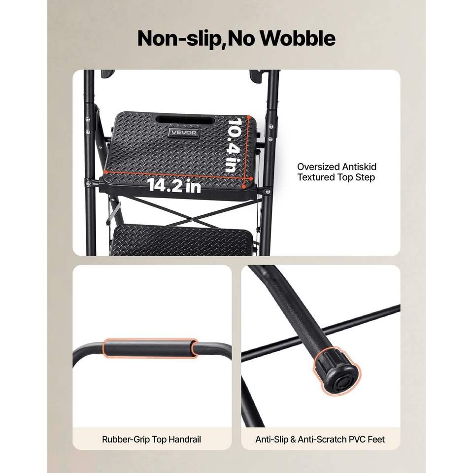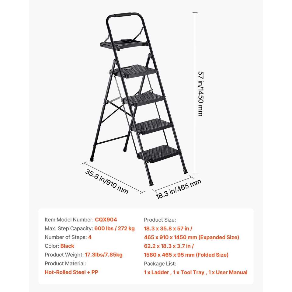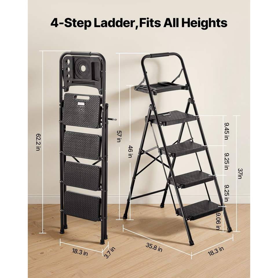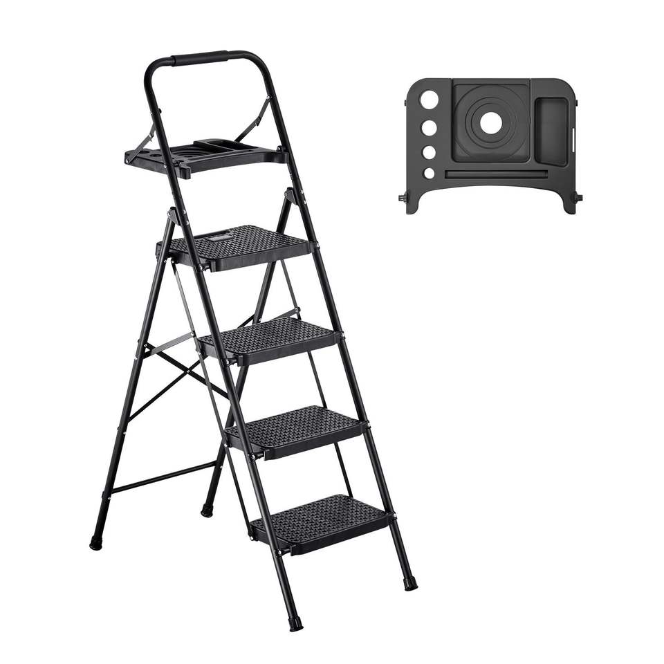 Scala Pieghevole Portatile in Acciaio a 4 Gradini con Pedana Antiscivolo, Impugnatura Confortevole, Capacità 600 Libbre, Ampio Vano Porta Attrezzi per Uso Domestico e Ufficio