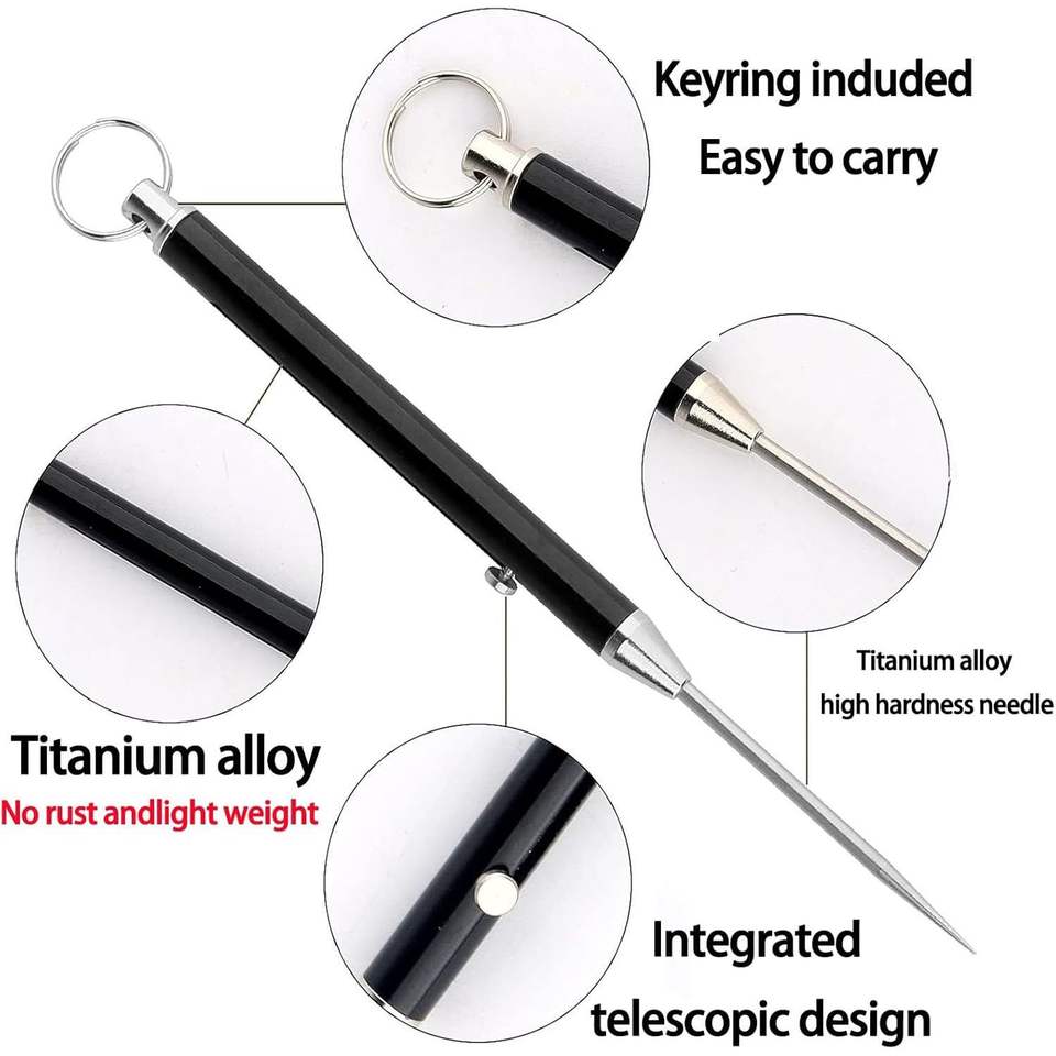 Portachiavi con Stuzzicadenti in Titanio Portatile, Porta Stuzzicadenti Telescopico Riutilizzabile in Acciaio Inossidabile, Cura Orale Tascabile in Metallo, Formato da Viaggio