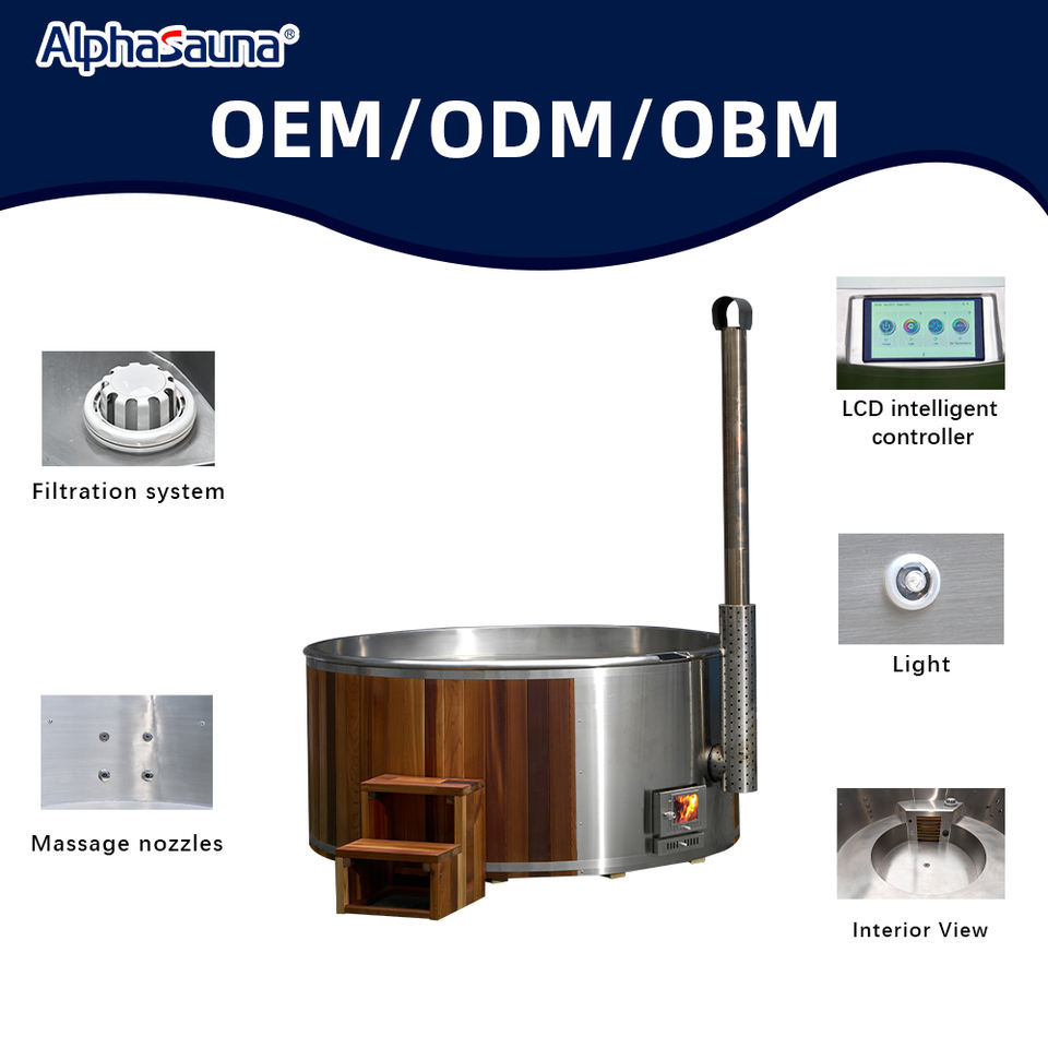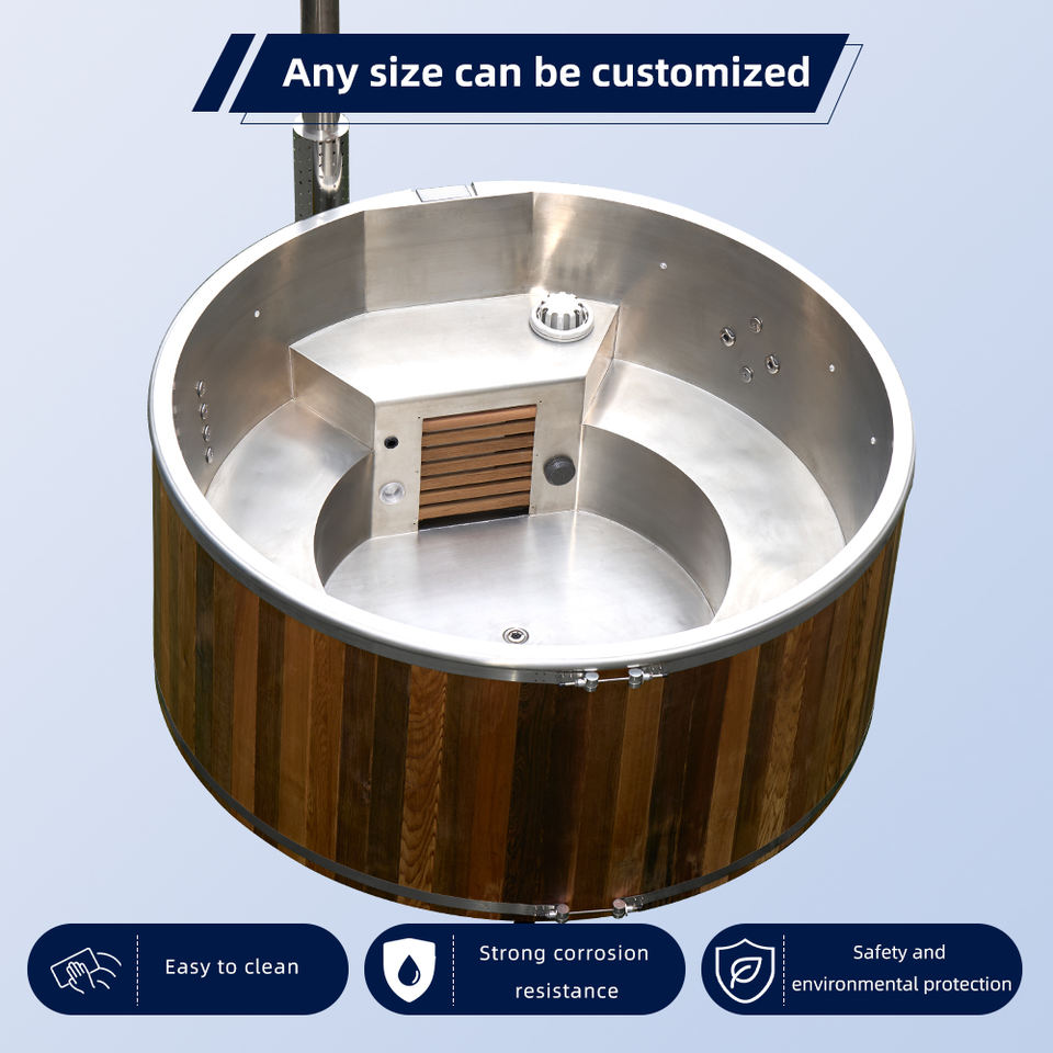 Vasca Portatile per Bagno Caldo e Freddo, Vasca Idromassaggio Ibrida a Legna con Pompa di Circolazione per Relax all'Aperto