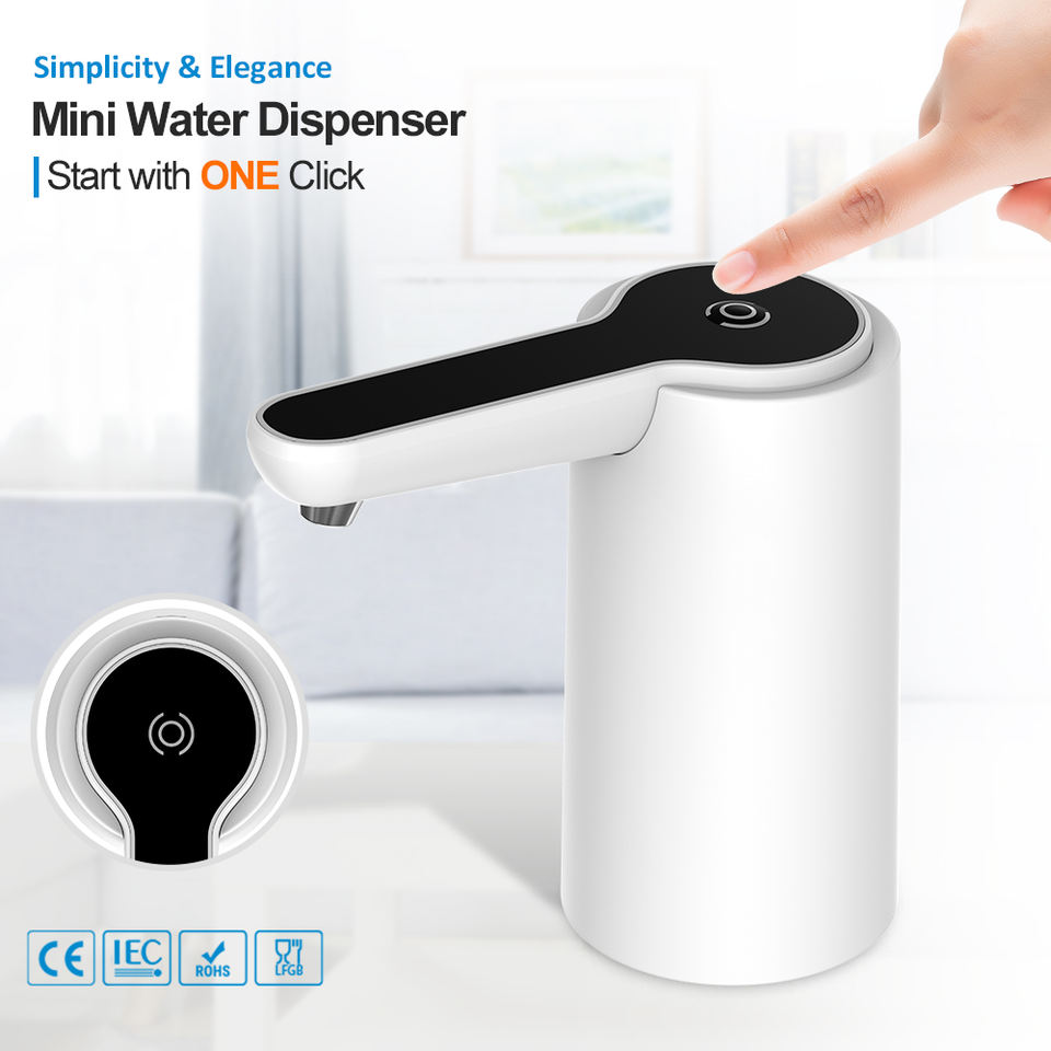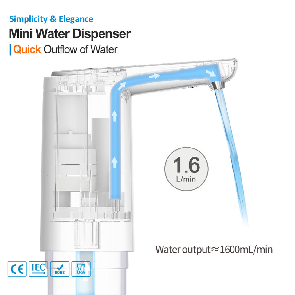 Pompa Elettrica USB Portatile per Erogazione Acqua con Stile a Gru, Un Solo Pulsante e LED Blu per Test di Qualità dell'Acqua in Bottiglia