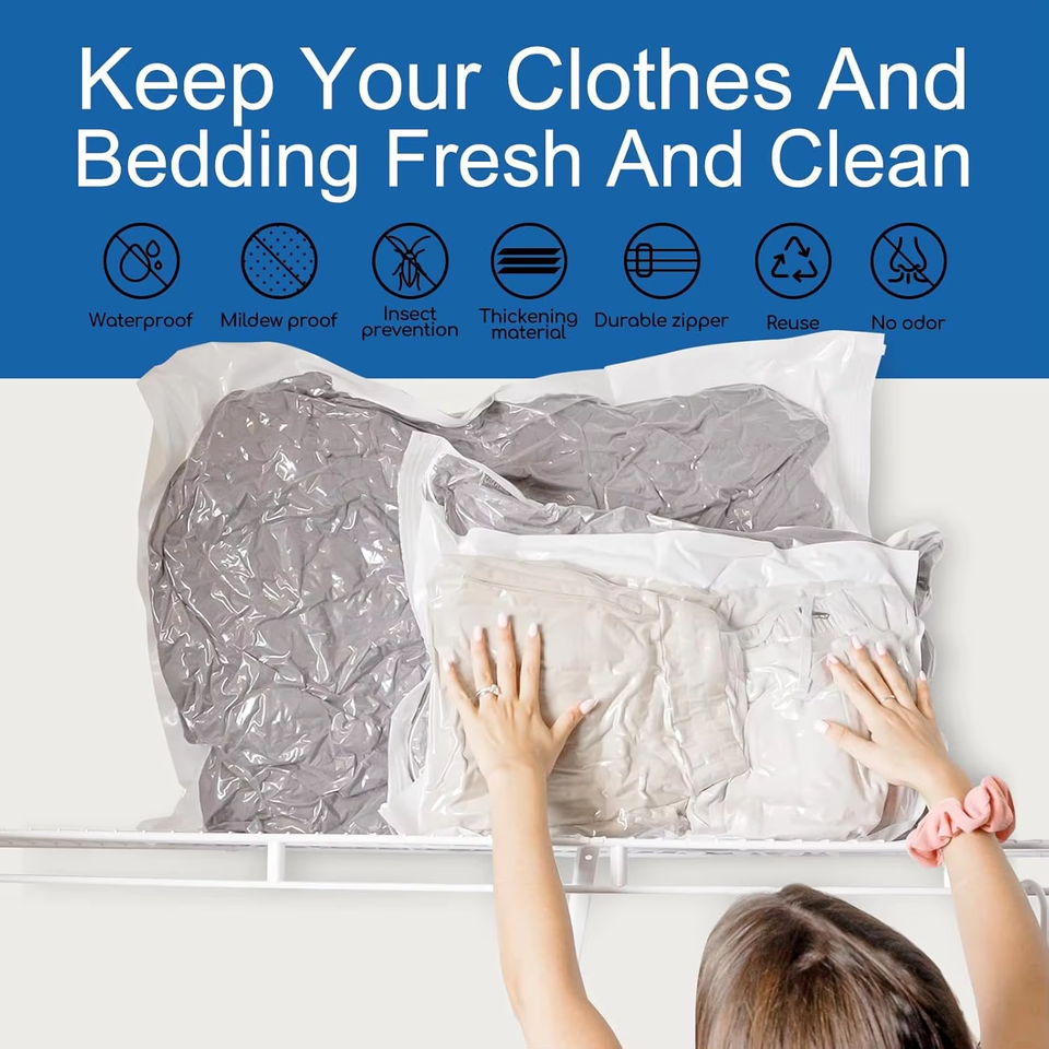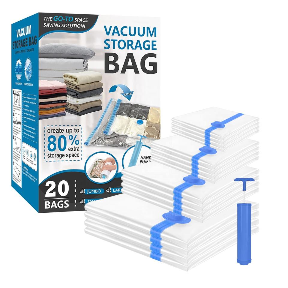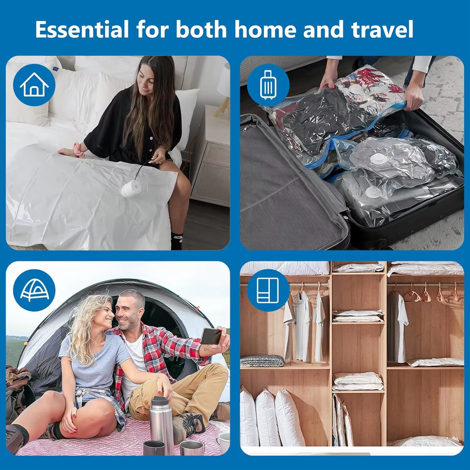 Sacchetti Sottovuoto Portatili con Pompa per Biancheria e Vestiti, Salvaspazio per Armadio
