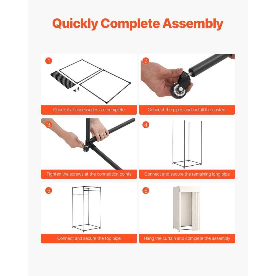 Armadio Portatile con Ganci in Metallo Robusti, Tende Spesse, Spazio per Vestirsi e Privacy, con Ruote per Spostamenti Facili