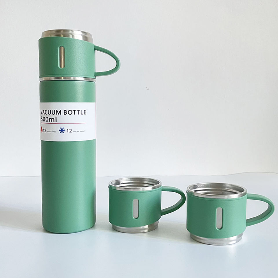 Portable Water Bottle Business Annual Meeting Gift 500ml Insulated Tumbler Set Stainless Steel Vacuum Flask One Cup Two Lid