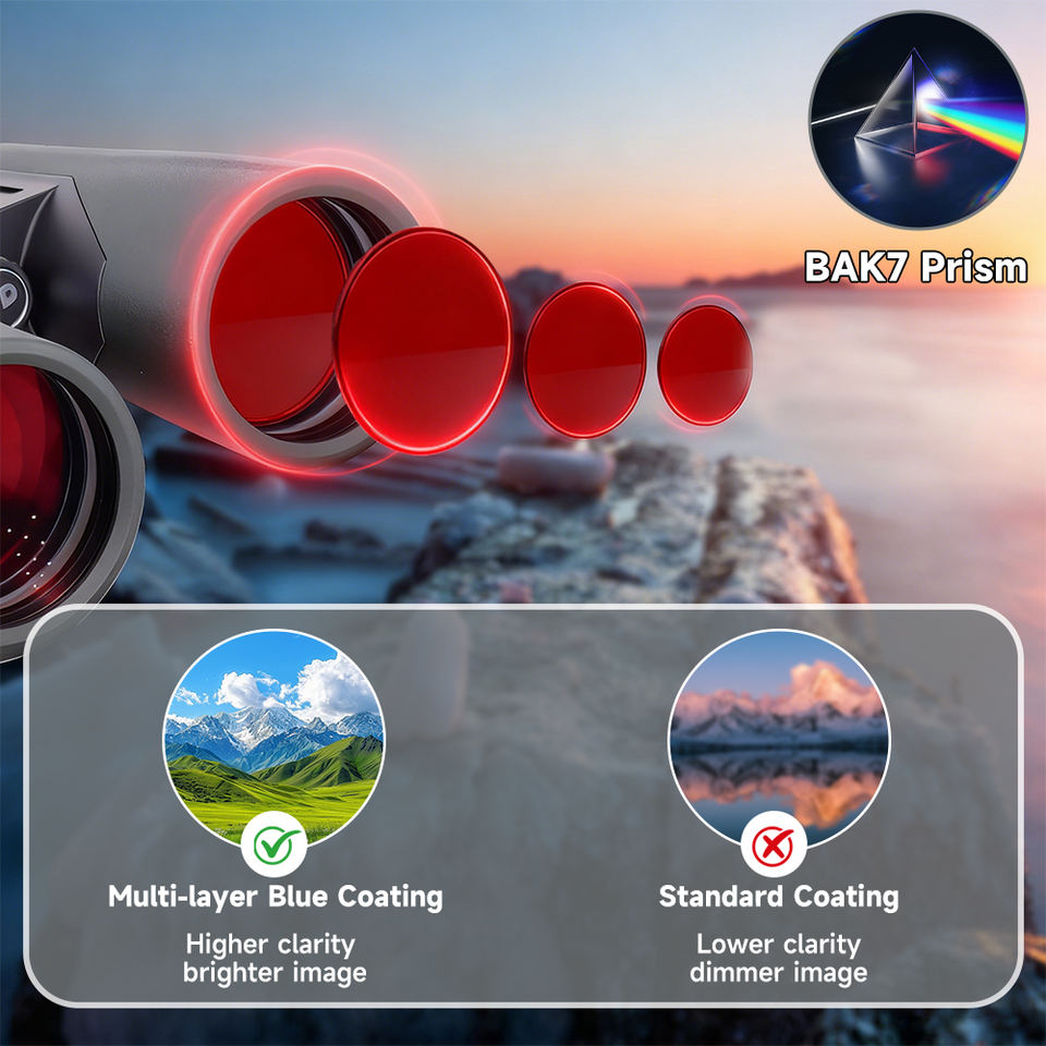 Impermeabile IPX7: Garantisce che il binocolo rimanga funzionante e non danneggiato in condizioni umide o umide, rendendolo adatto per attività all'aperto.