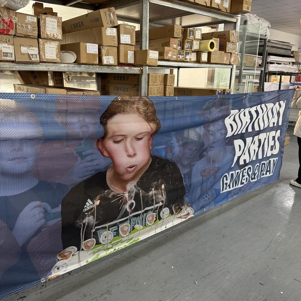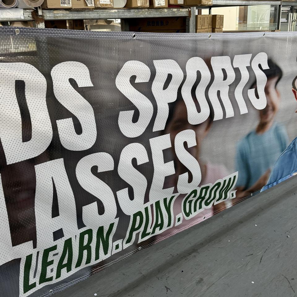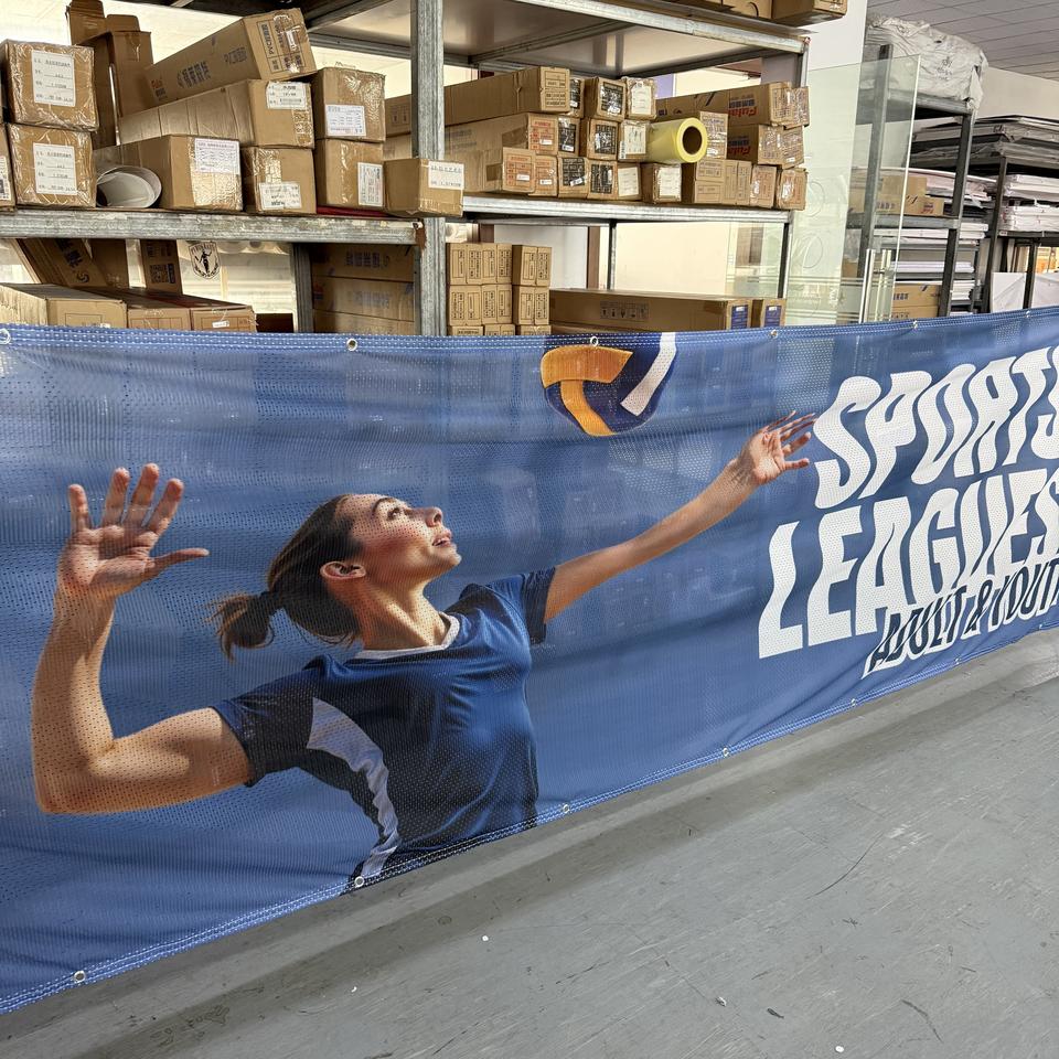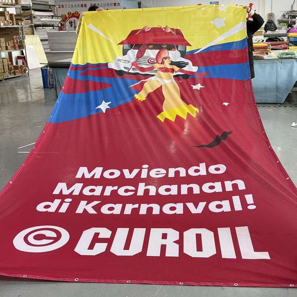 Striscione in Rete Portatile Impermeabile Resistente ai Raggi UV in Poliestere Antivento con Grafica Digitale