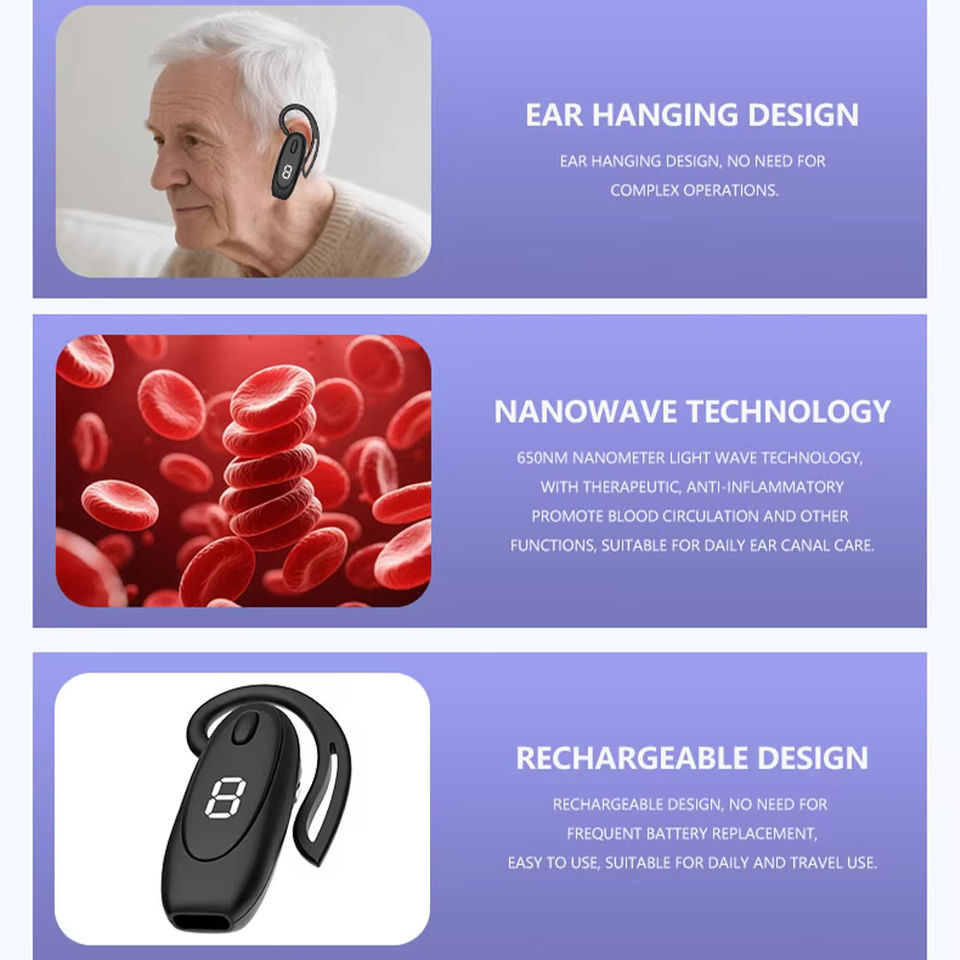Irrigatore Auricolare Wireless Portatile Ricaricabile, Riduce l'Acufene, Dispositivo di Terapia a Luce Rossa 650NM per la Cura delle Orecchie