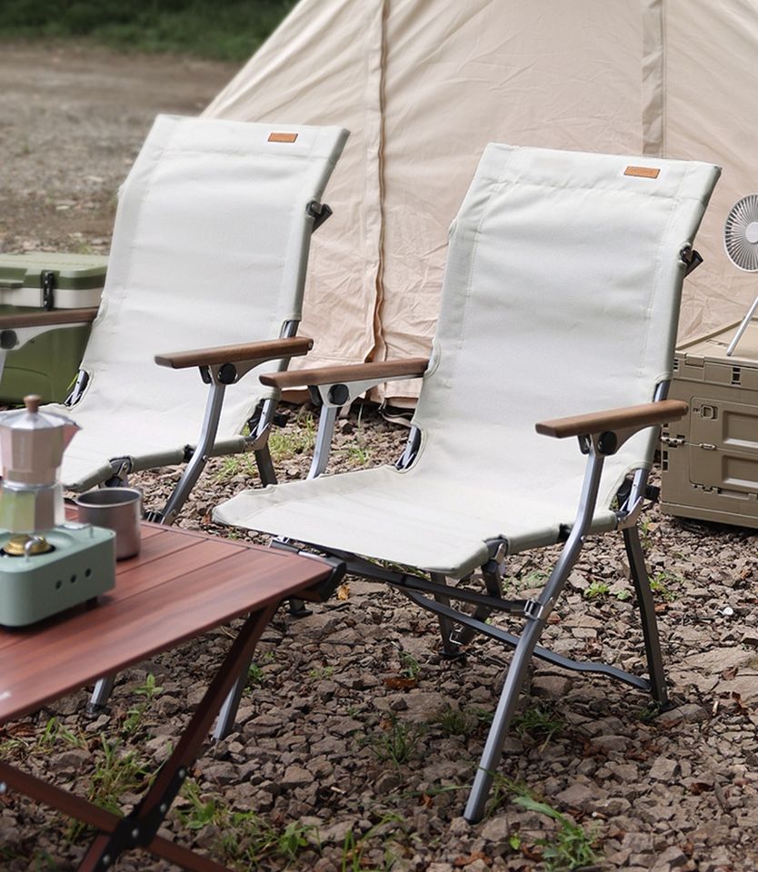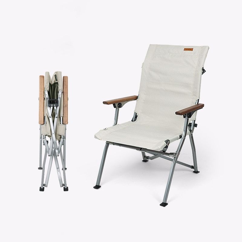 Portable and Foldable Reclining Chair With Wood Armrest for Fishing Beach and Camping Leisure Chair With Storage Bag