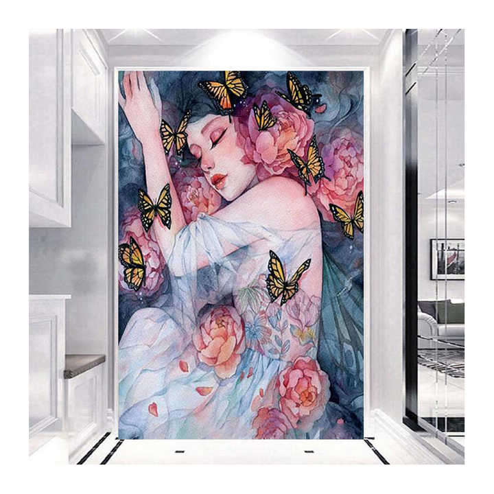 Ritratto ragazza farfalla fiore disegno su tela quadrato/rotondo fai da te pittura diamante 5D diamante pieno pittura per adulti artigianato per la casa