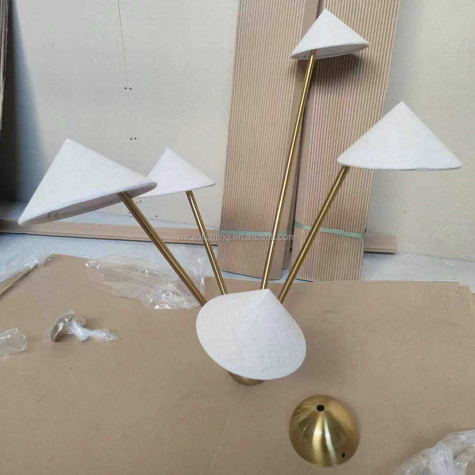 Postmodern Vintage Beige Shade Chandelier 5-Head Antiques Pendant Light with Fabric Lampshade Brass Hanging Lamp for Home Office