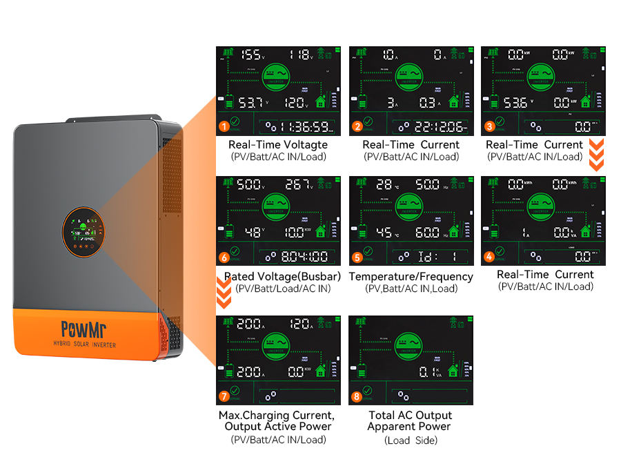 PowMr Low Price 12KW Hight Output Power 120/240Vac Single/Split Phase 2 MPPT Max PV 13200W Hybrid Solar Inverter