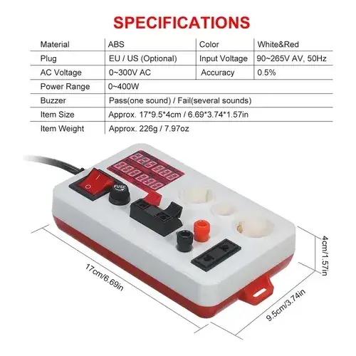 Strumento di Misurazione della Potenza Tester per Lampade e Lampadine con Voltmetro e Wattmetro