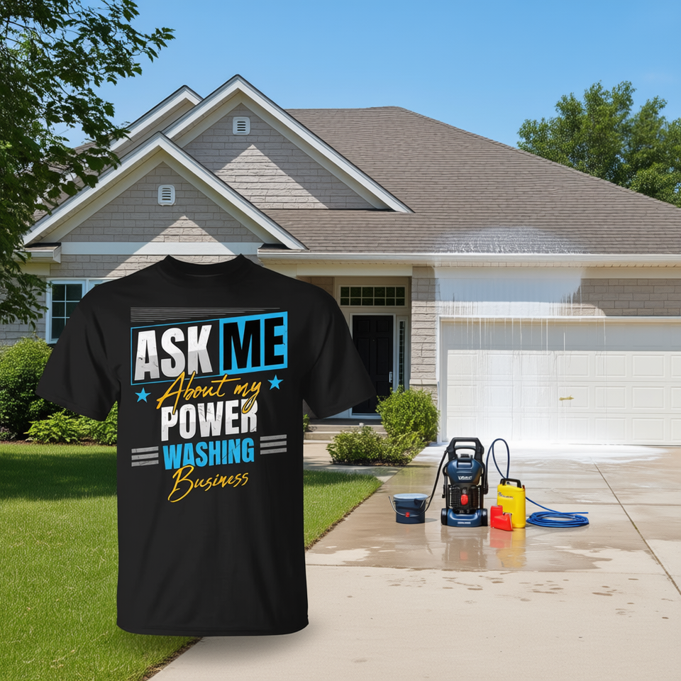 Maglietta Promozionale per Attività di Lavaggio a Pressione: 'Chiedimi Sulla Mia Attività di Lavaggio a Pressione'