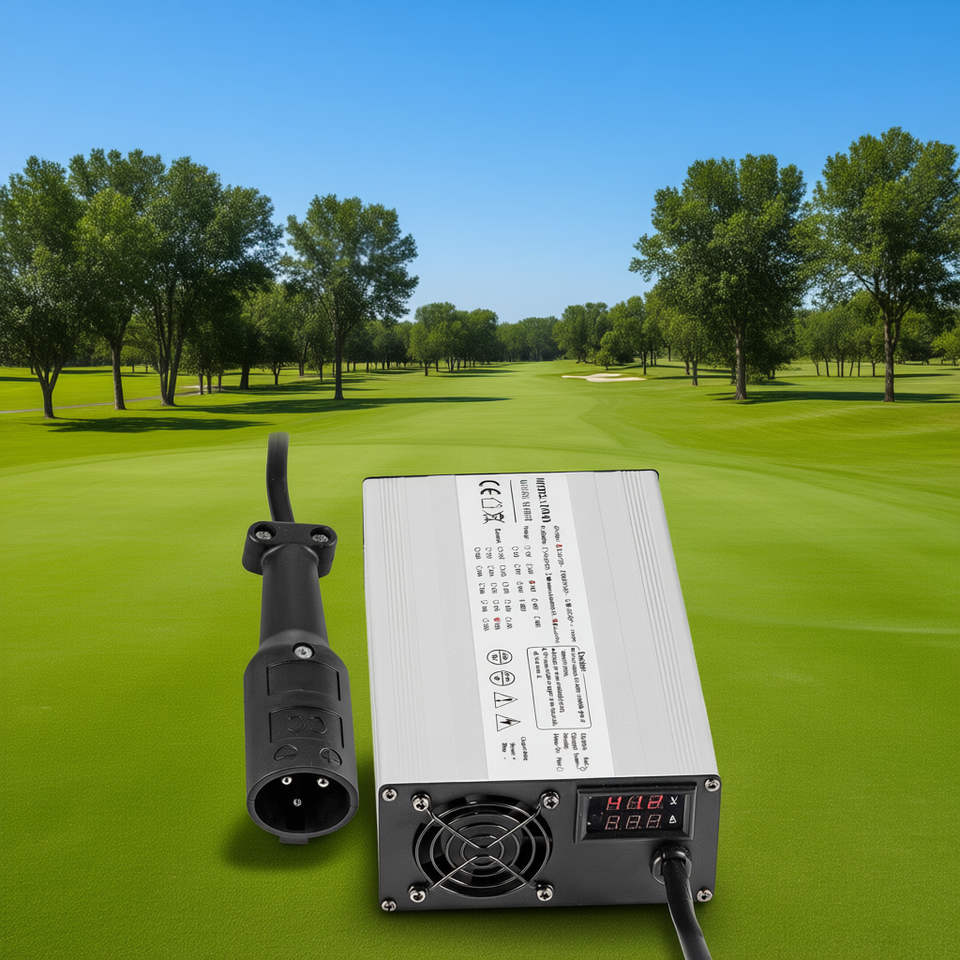 Caricabatterie Elettrico Power Wise 48V per Golf Cart, 15A, Guscio in Alluminio LED, Spina Rotonda a 3 Pin per Ez Go Yamaha