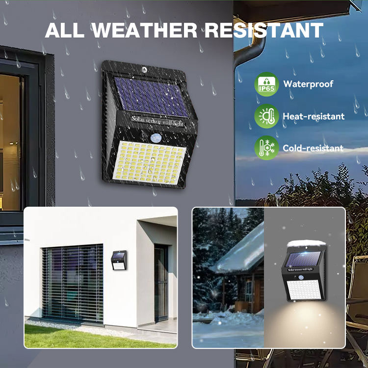 Potente Luce di Sicurezza a Energia Solare da 100 LED per Esterni con Sensore di Movimento, 3 Modalità, Impermeabile, Lampada da Parete Notturna per Giardino e Lavoro